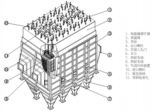 BEH高效節(jié)能型系列電除塵器是在吸取國內(nèi)外電除塵器現(xiàn)有先進技術(shù)的基礎(chǔ)上,充分應(yīng)用現(xiàn)代計算機仿真技術(shù)、先進的實驗研究裝備、先進的自動化系統(tǒng)控制技術(shù)、現(xiàn)代高頻逆變技術(shù)等現(xiàn)代科學(xué)研究方法,以及完善的除塵冷態(tài)試驗、仿真熱態(tài)試驗和工業(yè)現(xiàn)場試驗等試驗研究手段,對電除塵新技術(shù)的除塵機理、電場極配型式、超大除塵器內(nèi)部結(jié)構(gòu)、新型電源配套和應(yīng)用等關(guān)鍵技術(shù)進行深入研究,開發(fā)成功的一種高效率、低能耗、低投資的新型電除塵設(shè)備。被廣泛應(yīng)用于電力、建材、冶金、有色、化工等工業(yè)領(lǐng)域。